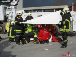 Wenige Minuten später rückten die Freiwilligen mit vier Einsatzfahrzeugen zum Einsatzort aus. Dort angekommen, wurde bei Erkundung der Lage festgestellt, dass es sich um einen schweren Arbeitsunfall handelt. Der Verunfallte wurde bereits durch das Rote Kreuz und der Mannschaft des Rettungshubschraubers C9 betreut. Die Aufgabe der Langenzersdorfer Florianis lag darin, den Patienten schonend aus seiner Lage zu befreien und zum Hubschrauber zu transportieren. Nach einer kurzen Nachbesprechung und Herstellen der Einsatzbereitschaft wurde der Einsatz um 15:50 Uhr beendet.