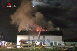 Der Innenangriff musste nach kurzer Zeit abgebrochen werden, da Teile der Dachkonstruktion und der Decken einstürzten und somit die Sicherheit der Einsatzkräfte akut gefährdet war. Zu diesem Zeitpunkt hatten die Flammen bereits auf den vorderen Teil des Dachstuhls übergegriffen. Da eine Rettung des Gebäudes zu diesem frühen Zeitpunkt, bedingt durch die massive Brandausbreitung, bereits nicht mehr möglich war, zielten die laufenden Löschmaßnahmen mit massiven Personal- und Materialeinsatz darauf ab, ein Übergreifen auf die angrenzenden Bauten zu verhindern. Dies ist den Einsatzkräften auch gelungen.
