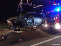 Vor Ort sicherten die Feuerwehrleute die Unfallstelle ab und bauten eine Beleuchtung auf. Die beiden schwer beschädigten Fahrzeuge wurden mittels Ladekran des Wechselladefahrzeuges geborgen und zu einem gesicherten Abstellplatz verbracht.
