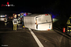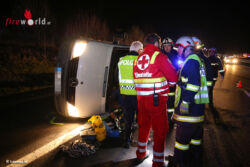 Ein Kleintransporter stürzte bei dem Unfall um, ein Pkw wurde schwer beschädigt. Auf der Gegenfahrbahn wurde ein Pkw von herumfliegenden Teilen getroffen und ebenfalls beschädigt. Feuerwehr, Rettungsdienst, Notarzt und Polizei standen im Einsatz. Eine Person erlitt leichte Verletzungen, die weiteren Unfallbeteiligten blieben offensichtlich unverletzt. Entgegen ersten Befürchtungen war glücklicherweise niemand im Fahrzeug eingeklemmt.