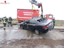 ENNSDORF (NÖ): Am Vormittag des 26. März 2016 wurde die Feuerwehr Ennsdorf durch die Bereichsalarmzentrale Amstetten zu einer Fahrzeugbergung in den Ennshafen alarmiert. Unweit jener Stelle, an der am Vortag die Einsatzübung abgehalten wurde, stürzte ein Lenker mit seinem Pkw über die Kaimauer in das Hafenbecken.