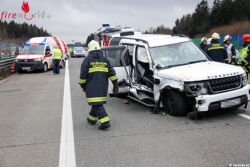 Aus bisher unbekannter Ursache fuhr ein Pkw auf den Auflieger eines Holztransporters auf. Die Beifahrerin des Pkw-Lenkers wurde bei dem Verkehrsunfall schwer verletzt. Der Pkw kippte laut ersten Informationen um und wurde noch vor dem Eintreffen der Einsatzkräfte von Ersthelfern wieder auf die Räder gestellt.