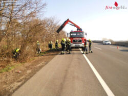 Da keine Person mehr aus dem Fahrzeug befreit werden musste, beschränkten sich die ersten Tätigkeiten auf das Binden von ausgelaufenen Flüssigkeiten und das Einsammeln von herumliegenden Fahrzeugteilen. Nach dem Start des Notarzthubschraubers konnte wieder eine Fahrspur für den Verkehr freigegeben werden.