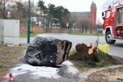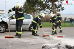 Für die Mannschaft der Feuerwehr begann die Routinearbeit. Der schwer beschädigte Renault wurde mittels Ladekran des schweren Rüstfahrzeuges auf die Räder gestellt, am Abschleppgalgen aufgenommen und anschließend abtransportiert. Weil der Begrenzungsstein am Gehweg zum Liegen kam, wurde dieser ebenfalls verhoben sowie der beschädigte Baum zerkleinert und auf der Grünfläche abgelegt. Nun folgten massive Maßnahmen zur Beseitigung der ausgeflossenen Betriebsmittel, um die Fahrbahn dementsprechend zu säubern. Nach rund 90 Minuten konnten die 11 Einsatzkräfte, mit deren drei Fahrzeugen, wieder einrücken und die verwendeten Gerätschaften einsatzbereit versorgen.