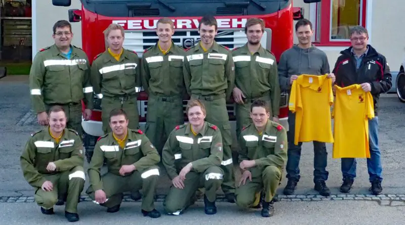 BISCHOFFELD (STMK): Die Bewerbsgruppe der Freiw. Feuerwehr Bischoffeld startet am 2. April 2016 in die 1:8 Bewerbssaison in Dietersdorf bei Fürstenfeld. Aus diesem Grund wurden am 28. März von den Sponsoren Forstservice Hopf KG, dem Sportzentrum Restaurant Gaalerhof sowie bei Hauser Maschinenbau die neuen Feuerwehrpolos der Gruppe übergeben.