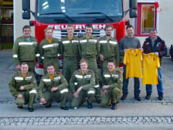 BISCHOFFELD (STMK): Die Bewerbsgruppe der Freiw. Feuerwehr Bischoffeld startet am 2. April 2016 in die 1:8 Bewerbssaison in Dietersdorf bei Fürstenfeld. Aus diesem Grund wurden am 28. März von den Sponsoren Forstservice Hopf KG, dem Sportzentrum Restaurant Gaalerhof sowie bei Hauser Maschinenbau die neuen Feuerwehrpolos der Gruppe übergeben.