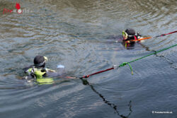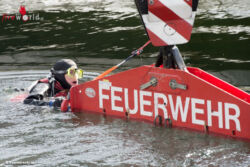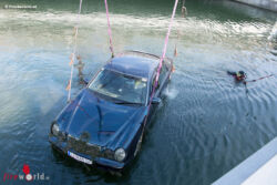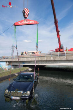 LINZ (OÖ): Am Mittwochnachmittag, 30. März 2016, wurde in Linz bei der Abfahrt Franzosenhausweg ein gestohlenes Taxi im Jaukerbach entdeckt. Ein Tauchtrupp der Feuerwehr barg das Fahrzeug aus dem Gewässer.