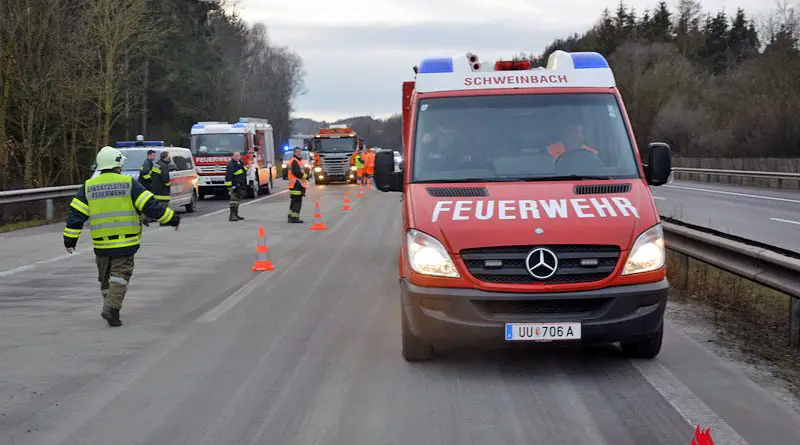 Oö: Autobahnsperre nach Lkw-Unfall mit Treibstoffaustritt auf A7 bei Schweinbach