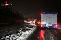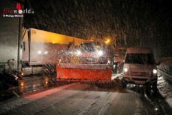 Deutschland: Verkehrschaos nach Schneefall auf A5 / Räumfahrzeuge stecken im Stau / Lkw-Fahrer eingeklemmt