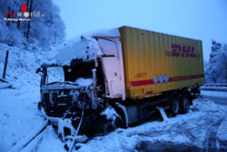 Die Feuerwehr der Stadt Alsfeld befreite ihn mit hydraulischem Rettungsgerät aus dem Unfallwrack. Er wurde mit einem Rettungswagen in das Kreiskrankenhaus nach Alsfeld eingeliefert. Wie die Autobahnpolizei schilderte, soll der 32-jährige Lastwagenfahrer aus dem Landkreis Neuwied in zwei witterungsbedingt haltende Lastzüge geprallt sein. Den entstandenen Sachschaden bezifferte die Polizei auf etwa 85.000 Euro.