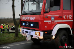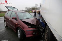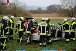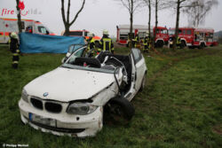 Nach dem Frontalzusammenstoß schleuderte das Auto der 75-Jährigen unter einen Sattelzug, der am Straßenrand parkte. Der 24-Jährige schleuderte mit seinem Auto auf eine Wiese und wurde im demolierten Wrack eingeschlossen. Die Feuerwehr der Stadt Homberg befreite ihn mit hydraulischem Rettungsgerät. Wie Einsatzleiter Thomas Stein informierte, wurden zur Rettung des Verunfallten das komplette Dach und die Türen auf der Fahrerseite abgetrennt. „Über ein Rettungsbrett wurde der Verunfallte aus dem Fahrzeug gehoben“, so Stein.