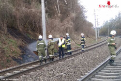 Ein Sicherheitsbeamter der ÖBB war rasch vor Ort und sperrte vorübergehend die gesamte Strecke. Nach der Erdung der Oberleitung konnten die Feuerwehren ohne Gefahr den Brand unter Kontrolle bringen und die nahe Umgebung absichern.