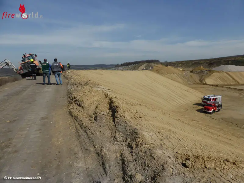 Aus unbekannter Ursache geriet der Fahrer eines 22-Tonnen-Radladers mit seinem Fahrzeug von einem Feldweg ab, und drohte einen Hang hinab zu rutschen. Um das schwere Baufahrzeug wieder auf sicheren Boden zu befördern, wurde die FF Großweikersdorf zu Hilfe gerufen.