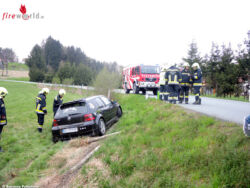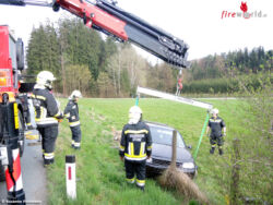 STAINZ (STMK): Kurz vor 17:00 Uhr ist am 1. April 2016 ein Pkw von der Bad Gamser Straße abgekommen. Der VW Golf stürzte dabei die rund zwei Meter tiefe Böschung hinunter.