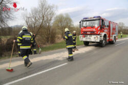 Binnen acht Stunden galt es vier hintereinander folgende Einsätze zu bewältigen. Begonnen hat die Einsatzserie in den Mittagsstunden mit einer Traktorbergung in Spielberg. Gegen 16:00 Uhr verlor ein Traktor samt Anhänger zwischen Knittelfeld und Apfelberg entlang der L 504 Öl. Auf rund vier Kilometer Länge mussten 30 Feuerwehrmänner aus Apfelberg und Knittelfeld die ausgetretenen Betriebsmittel per Hand binden und entsorgen.