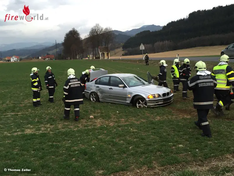 Noch während dem Reinigen der Ausrüstungsgegenstände traf der nächste Notruf in der Landesleitzentrale in Lebring ein. Aus bisher nicht geklärter Ursache brach gegen 17:30 Uhr ein Brand bei einer Forstmaschine in Feistritz bei Knittelfeld aus. Durch den raschen Einsatz der Feuerwehren Feistritz, St. Marein und St. Lorenzen konnte der Brand rasch unter Kontrolle gebracht werden. Den Abschluss der Einsatzserie lieferte ein Verkehrsunfall in Großlobming. Ein PKW Lenker verlor auf der L543 die Kontrolle über sein Fahrzeug und landete auf dem Dach im angrenzenden Acker. Gesamt waren bei den vier Einsätzen 120 Mann eingesetzt.