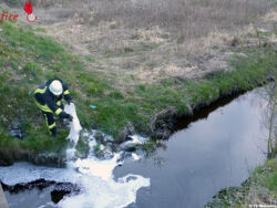 D: Feuerwehr bindet Öl in einem Wasserlauf