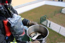 Sofort rüstete Sich ein Atemschutztrupp zur Erkundung und erforderlichenfalls zur Brandbekämpfung aus. Zwischenzeitlich konnte ein couragierter Nachbar über einen benachbarten Balkon die Balkontür gewaltsam öffnen und das bereits brennende Kochgut vom Herd entfernen und die Wohnungstür von innen öffnen.