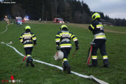 Übungsannahme war, das Fördern von Löschwasser im Zuge eines Waldbrandes über längere Wegstrecken. Mit fünf Pumpen wurde das Löschwasser auf einer Länge von knapp 400 und auf einem Höhenunterschied von 80 Metern zum Brandherd transportiert.