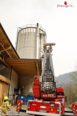 Beim zweiten Szenario, welches zeitgleich mit dem Gebäudebrand abgearbeitet wurde, hieß es für die Kameraden aus Fügen mit der Drehleiter eine Person vom Silo zu retten. Nach dem erfolgreichen Rettungseinsatz unterstützen die Florianijünger die Kameraden bei der Brandbekämpfung aus der Luft.