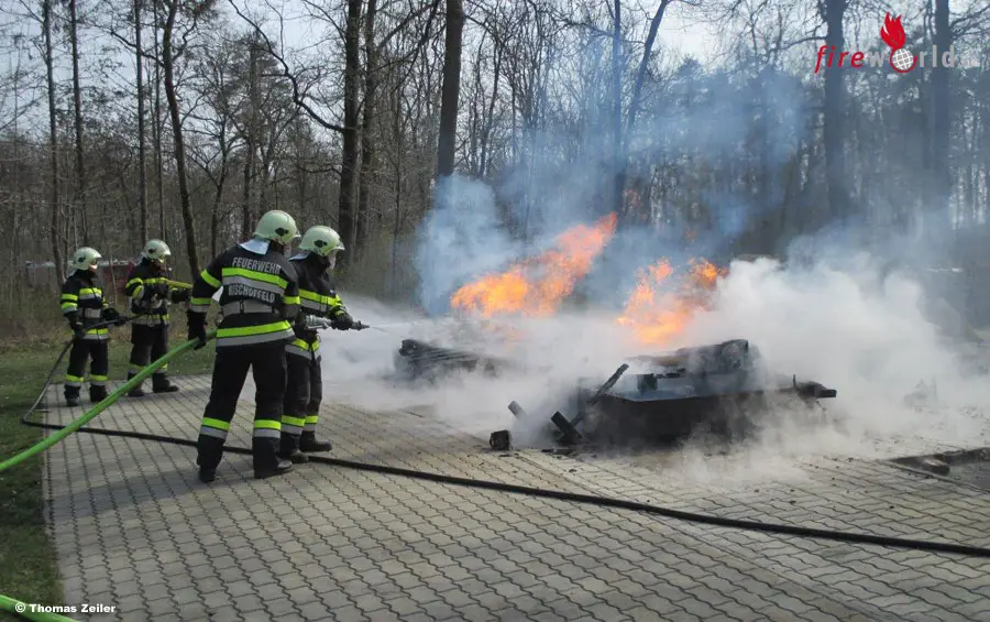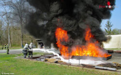 Neben der Brandbekämpfung mit Feuerwehrlöschern der verschiedenen Brandklassen mussten die jungen Feuerwehrleute auch bei einem Flüssigkeitsbrand ihr Können unter Beweis stellen. Dass man nicht jedes Feuer mit Wasser löschen soll demonstrierten die sechs mitgereisten Ausbilder des Bereichsfeuerwehrverbandes Knittelfeld den angehenden Feuerwehrmännern am Beispiel eines Magnesiumbrandes.