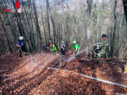 Mittels Kreuzhauen wurde der Waldboden aufgegraben und das Erdreich danach mit den D-Rohren befeuchtet bis im gesamten Gebiet keine Glutnester mehr zu erkennen waren. Danach wurden Teile der Angriffsleitungen abgebaut. Eine B-Versorgungsleitung mit D-Rohren wurde zurückgelassen um im Falle einer neuerlichen Brandentwicklung rasch zur Stelle zu sein.
