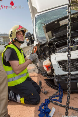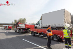 Nachdem die Richtungsfahrbahn St. Pölten durch die Polizei und die Straßenmeisterei komplett gesperrt wurde konnte die Bergung in Angriff genommen werden. Dazu wurde der Anhänger vor dem Unfallfahrzeug in Position gebracht und abgehängt. Anschließend konnte Tank 5 Krems wenden und sich mit der Seilwinde vor dem Anhänger positionieren. Gleichzeitig wurde Last 4 mit dem Ladekran neben dem Anhänger in Stellung gebracht.