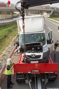 Zur Bergung wurde von der Autobahnpolizei Krems die Feuerwehr Krems angefordert. Die Bezirksalarmzentrale Krems alarmierte die Hausmannschaft der Hauptwache und zusätzlich die Feuerwache Hollenburg. Nach wenigen Kilometern Anfahrtsweg konnte der Einsatzort rasch erreicht werden. Zur Bergung des Transporters wurde nach Absprache mit dem Fahrzeuglenker Last 3 Krems mit dem Tiefladeanhänger nachgefordert.