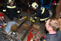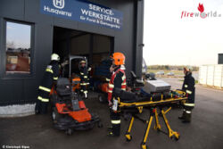 Geschäftsführer der Firma Best4Forst Ing. Andreas Picha zeigte großtes Interesse daran, seinen Betrieb als Übungsobjekt zu Verfügung zu stellen. Übungsannahme war eine Explosion in der Lagerhalle des Betriebes, welche eine starke Rauchentwicklung zu Folge hatte. Sechs Personen wurden vermisst – zwei davon unter schweren Lasten eingeklemmt.