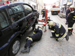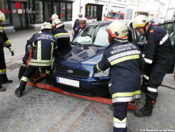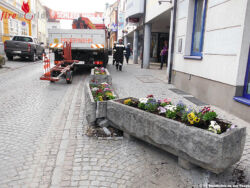 WAIDHOFEN AN DER THAYA (NÖ): Die Polizei forderte am 4. April 206, um 17.21 Uhr, die Freiw. Feuerwehr Waidhofen/Thaya zur Bergung eines Unfallwagens in der Böhmgasse an. Ein Pkw rammte einige Blumen-Steintröge und wurde dabei schwer beschädigt.