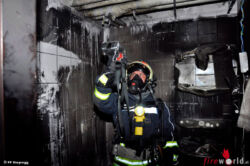 „Als wir am Einsatzort eintrafen, war die Wohnung bereits stark verraucht. Uns wurde mitgeteilt, dass eine 85-jährige gehbeeinträchtigte Frau im Rollstuhl in der Wohnung war“, schilderte der Kommandant der Freiwilligen Feuerwehr Steyregg Manfred Rachinger die ersten Minuten. Umgehend wurde ein Atemschutztrupp mit dem Auftrag der Menschenrettung in die Wohnung geschickt.