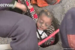 China: 3-jähriger Bub bleibt bei Sturz in 90 m Brunnen auf 12 Meter hängen -> Erfolgreiche Rettung auf Video