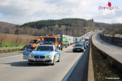GRÜNBERG (DEUTSCHLAND): Zu einem schweren Verkehrsunfall kam es am Mittwochvormittag, 6. April 2016, auf der A5 in Richtung Frankfurt nahe Grünberg. Insgesamt drei Lastwagen krachten ineinander, dabei wurde ein Fahrer schwer verletzt im seinem Fahrzeug eingeklemmt.