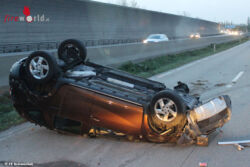 SCHWECHAT (NÖ): Zu einem heftigen Stau in den Morgenstunden des 6. April 2016 kam es auf der A4 in Fahrtrichtung Osten im Bereich zwischen Flughafen und Knoten Schwechat. Zwei Pkw waren kollidiert, wobei sich einer überschlug und am Dach liegen blieb.