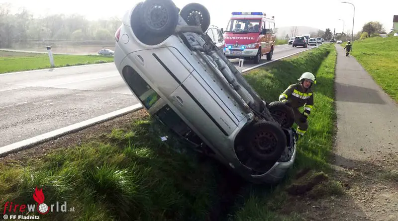 Stmk: Pkw landet bei Unfall in Fladnitz am Dach liegend im Graben