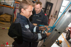 Knoten, Dienstgrade, Fragen des Testblattes, die Geräte für den Brandeinsatz und die technische Hilfeleistung, sowie die Kleinlöschgeräte galt es für die über 12-Jährigen richtig zu erkennen bzw. zu beantworten. Auch der richtige Umgang mit dem Feuerlöscher und die persönliche Schutzausrüstung musste von der Stufe Gold erkannt und angewandt werden.