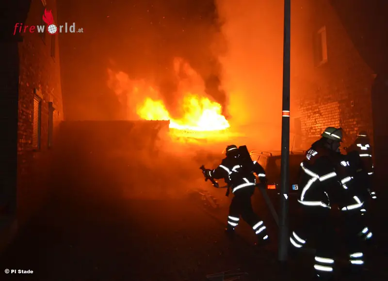 Deutschland: Schuppen brennt in voller Ausdehnung – Feuerübergriff auf Wohnhaus in Stade verhindert