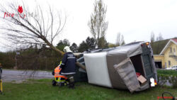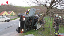 Der zweite Pkw stürzte durch die Wucht des Aufpralls seitlich auf die Fahrerseite um. Das Fahrzeug wurde an der Windschutzscheibe durch einen Baum gebremst. Der Lenker befand sich noch im Fahrzeug. Sofort nach Eintreffen an der Unfallstelle wurde der Lenker von praktischem Arzt, First Responder und Feuerwehrsanitäter (welche auch Rettungssanitäter sind) ohne technische Hilfsmittel über die Frontscheibe aus dem Fahrzeug gerettet und erstversorgt. Dieser wurde anschließend vom Rettungswagen ins Krankenhaus gebracht.