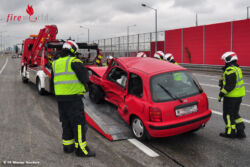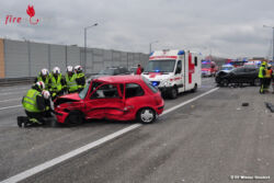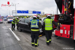 Nach der Ankunft der Feuerwehr am Unfallort konnte festgestellt werden, dass keine Person eingeschlossen bzw. eingeklemmt war. Die zum Teil schwer verletzten Insassen wurden zu diesem Zeitpunkt durch das ebenfalls alarmierte Rote Kreuz samt Notarzt-Team am Unfallort versorgt. Nach abgeschlossener Unfallaufnahme der Autobahnpolizei konnte mit der Bergung der Unfallwracks begonnen werden. Die Bergung führte die Feuerwehr Wiener Neudorf mit dem Abschleppfahrzeug sowie dem schweren Rüstfahrzeug durch.