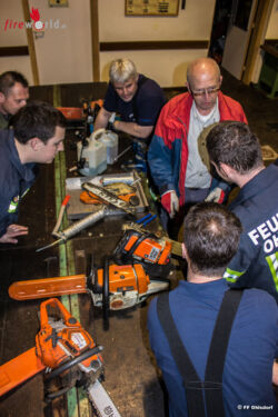 Nachdem die angesetzten drei Stunden Schulungsdauer bei weitem nicht ausgereicht haben, noch tiefer in die Materie der Forstarbeit im Rahmen des Feuerwehrdienstes einzutauchen, geschweigen den der weiteren Wartung einer Motorsäge gerecht zu werden, wurde beschlossen, weiterführende Übungen möglichst zeitnahe abzuhalten.