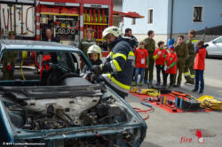 In sieben Stationen wurde ihnen die persönliche Schutzausrüstung, der Atemschutz, sowie das richtige Verhalten in verrauchten Räumen nähergebracht. Auch das hydraulische Rettungsgerät konnte von den Kindern und Jugendlichen an einem Fahrzeug selbst ausprobiert werden. Natürlich durfte auch das Löschen mit dem Hochdruckrohr nicht fehlen. Für die Mutigen unter den Kids ging es dann noch mit dem Kran des Wechselladefahrzeuges hoch hinaus.
