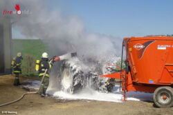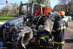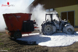 Nachdem das erste Tanklöschfahrzeug am Einsatzort eingetroffen war, wurde sofort ein Schaumangriff gestartet, dieser war nach wenigen Minuten erfolgreich und es konnte „Brand aus“ gegeben werden. Im Anschluss wurde der Traktor noch gesichert abgestellt und die ausgelaufenen Betriebsmittel gebunden.