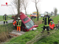 Daraufhin geriet das Gespann außer Kontrolle und der Pkw kollidierte auf der linken Fahrbahnseite mit einem Baum. Ein 53-jähriger Nordenhamer, der auf der Rückbank des Pkw saß, wurde eingeklemmt und musste durch die Freiwillige Feuerwehr Eckwarden und die Freiwillige Feuerwehr Tossens befreit werden. Der 53-Jährige sowie der Beifahrer im Auto, ein 54-Jähriger aus Butjadingen, wurden bei dem Unfall nach ersten Erkenntnissen schwer verletzt. Der 57-jährige Fahrer verletzte sich leicht.