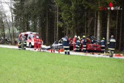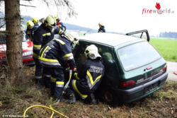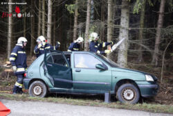 GUTAU (OÖ): Zu einem Verkehrsunfall mit eingeklemmten Personen wurden die Gutauer Feuerwehren und das Rote Kreuz Pregarten anlässlich der heurigen Frühjahrsübung des Pflichtbereichs Gutau am 9. April 2016 um ca. 14:00 Uhr gerufen.