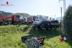 Das Auto wurde in den Straßengraben geschoben und der 60-jährige Lenker eingeklemmt. Er musste von der Feuerwehr befreit werden und wurde danach verletzt ins Krankenhaus Steyr eingeliefert.