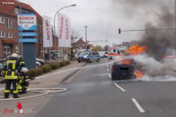 WESTERCELLE (DEUTSCHLAND): Gegen 12:15 Uhr kam es am 13. April 2016 zu einem Fahrzeugbrand in Westercelle. Der 57 Jahre alte Autofahrer hatte seinen Ford Focus kurz zuvor mit Autogas betankt und wollte von dort in Richtung Innenstadt fahren. Als er sich im Fahrzeug ein Zigarette anzündete, kam es zu einer Verpuffung.