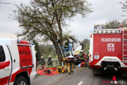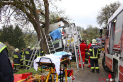 SCHARTEN (OÖ): Ein schwerer Lkw-Unfall ereignete sich Donnerstagvormittag, 14. April 2016, auf der Schartener Straße in Scharten (Bezirk Eferding). Ein Lkw krachte gegen einen Baum neben der Schartner Straße, die Beifahrerin wurde bei dem Unfall schwer im Fahrzeug eingeklemmt.