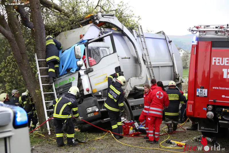 Oö: Lkw in Scharten gegen Baum gekracht: Beifahrerin schwer eingeklemmt (+Video)