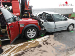 Die Feuerwehr Vestenötting-Kleineberharts forderte um 10:56 Uhr die Feuerwehr Waidhofen/Thaya zur Unterstützung bei der Fahrzeugbergung an. Der Lenker eines Renault Scenic war auf der LB36 von Thaya kommend Richtung Waidhofen/Thaya unterwegs und wollte im Kreuzungsbereich links auf die Landesstraße Richtung Kleineberharts abbiegen. Ein hinter ihm fahrender Land Rover Discovery 4 dürfte das Abbiegemanöver zu spät bemerkt haben, krachte in das Heck des Renault und schob diesen noch rund 40 Meter weiter.