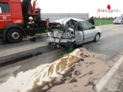 Die beiden Insassen des Renault Scenic wurden bei diesem Zusammenstoß unbestimmten Grades verletzt und vom Roten Kreuz ins Landesklinikum transportiert. Nach der Unfallaufnahme durch die Polizei wurde der stark beschädigte Renault mittels Ladekran geboren und anschließend mit dem Lastfahrzeug zum Feuerwehrhausareal abtransportiert. Der ebenfalls beschädigte Land Rover wurde durch eine Fachwerkstätte abtransportiert. Die ausgetretenen Betriebsmittel wurden von den Einsatzkräften der Feuerwehr mittels Bindemittel gebunden und von der Fahrbahn entfernt.